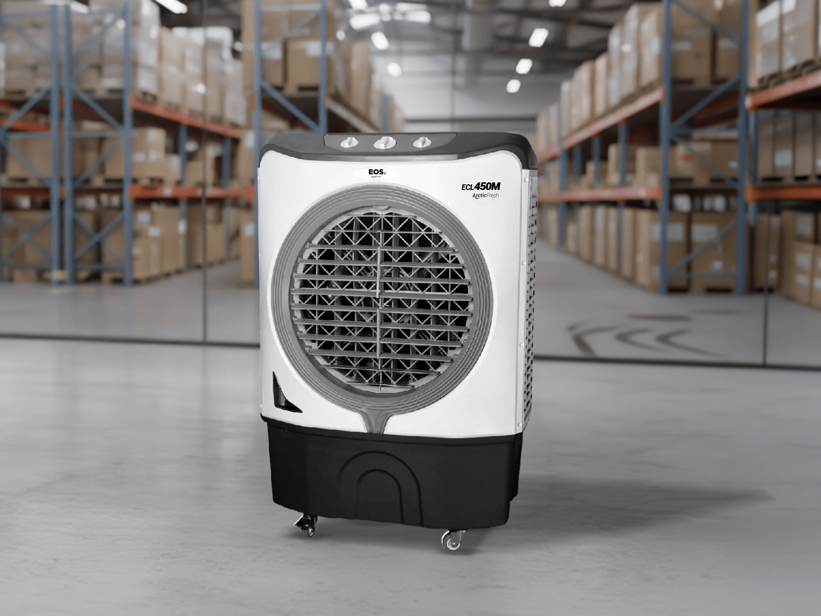 Com alta capacidade de reservatório, o climatizador EOS é adequado para uso prolongado ao longo do dia, atendendo espaços amplos como áreas comerciais, salões, academias, oficinas, restaurantes e ambientes corporativos. Sua vazão de ar favorece a distribuição uniforme, contribuindo para sensação térmica mais equilibrada.